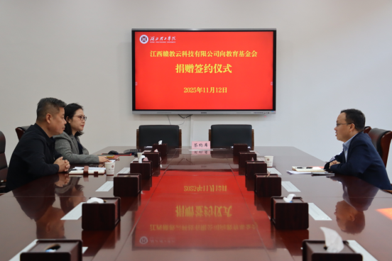 11月12日,江西赣教云科技有限公司向我校教育基金会捐赠100万元签约仪式在X4-302室隆重举行。赣教云科技副总裁吕建军代表企业出席仪式,我校党委副书记、副校长冯运仿,校教育基金会秘书长陈晋参与仪式。仪式由陈晋主持,现场气氛庄重而热烈。